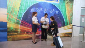 เบตง / เจ้าหน้าที่สนามบินเบตงประดิษฐ์ริบบิ้นมอบให้ประชาชนนักท่องเที่ยว