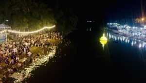 “ลอยกระทงย้อนยุคตลาดน้ำคลองแห” แต่งชุดไทยร่วมอาลัย “สมเด็จพระพันปีหลวง” อย่างคึกคักชาวไทย–นักท่องเที่ยวต่างชาติร่วมสืบสาน
