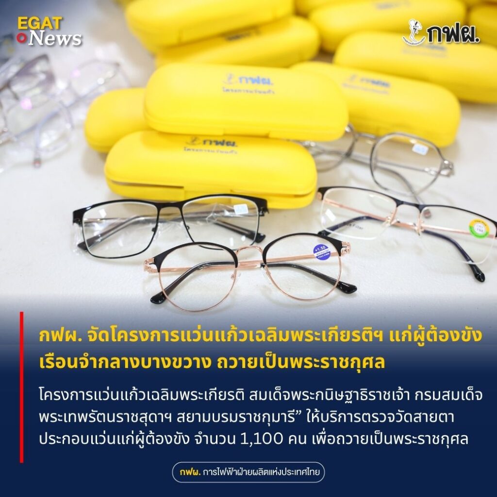 การไฟฟ้าฝ่ายผลิตแห่งประเทศไทย (กฟผ.) ร่วมกับ เรือนจำกลางบางขวาง จัดกิจกรรม “ออกหน่วยโครงการแว่นแก้วเฉลิมพระเกียรติ สมเด็จพระกนิษฐาธิราชเจ้า กรมสมเด็จพระเทพรัตนราชสุดาฯ สยามบรมราชกุมารี” ให้บริการตรวจวัดสายตาประกอบแว่นแก่ผู้ต้องขัง จำนวน 1,100 คน เพื่อถวายเป็นพระราชกุศล เนื่องในโอกาสวันคล้ายวันพระราชสมภพ สมเด็จพระกนิษฐาธิราชเจ้า กรมสมเด็จพระเทพรัตนราชสุดาฯ สยามบรมราชกุมารี 2 เมษายน 2569 โดยมีพันตำรวจโท ประวุธ วงศ์สีนิล อธิบดีกรมราชทัณฑ์ และนางทวิวรรณ ด่านวิไล รองผู้ว่าการเชื้อเพลิง กฟผ. ร่วมกิจกรรม ซึ่งได้รับความร่วมมือจากโรงพยาบาลเมตตาประชารักษ์ (วัดไร่ขิง) ในการสนับสนุนนักทัศนมาตรและบุคลากรทางการแพทย์ ณ เรือนจำกลางบางขวาง จ.นนทบุรี เมื่อต้นเดือนเมษายน 2569