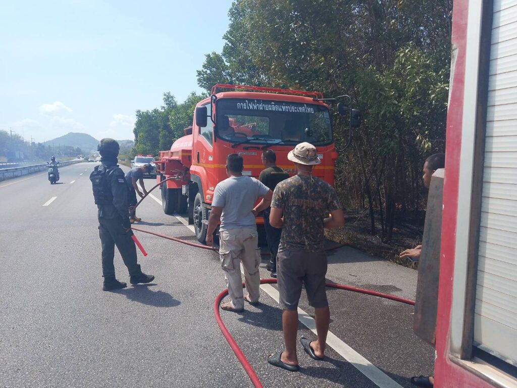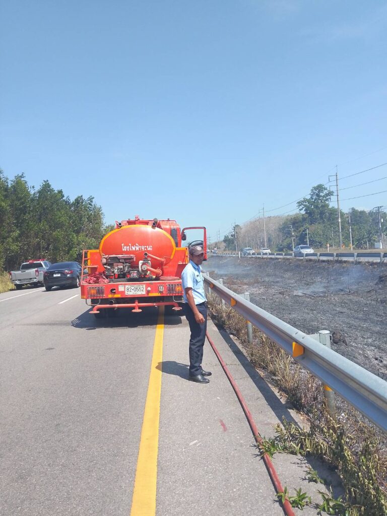 กฟผ.โรงไฟฟ้าจะนะ นำรถน้ำช่วยดับเพลิงไหม้ริมถนนสายหาดใหญ่ – จะนะ