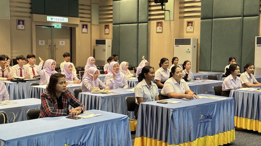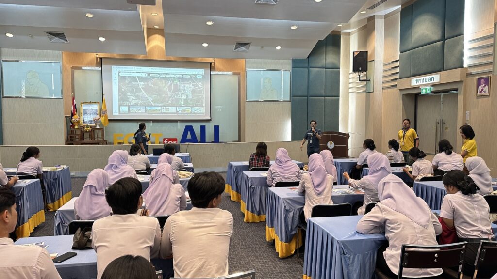 วันที่ 21 ตุลาคม 2568 โรงไฟฟ้าจะนะให้การต้อนรับคณะศึกษาดูงานจากคณะวิทยาศาสตร์และเทคโนโลยี หลักสูตรสาธารณสุขศาสตรบัณฑิต สาขาวิชาสาธารณสุขชุมชน มหาวิทยาลัยราชภัฏสงขลา ที่มาศึกษาดูงานเรื่องการประเมินผลกระทบทางสิ่งแวดล้อม โดยมีนางสาวศิริณา ถาวรวิสิทธิ์หัวหน้าสิ่งแวดล้อม เป็นวิทยากรบรรยาย ร่วมด้วยนายทรงวุฒิ เกลี้ยงสง หัวหน้าแผนกความปลอดภัย อาชีวอนามัย และสภาพแวดล้อมในการทำงาน และนายจิตวัต วงศ์วาสนา หัวหน้าแผนกประชาสัมพันธ์และชุมชนสัมพันธ์โรงไฟฟ้าจะนะ ร่วมต้อนรับและตอบข้อซักถาม หลังจากนั้น คณะฯได้เข้าเยี่ยมชมศูนย์การเรียนรู้ กฟผ. จะนะ ตามลำดับ