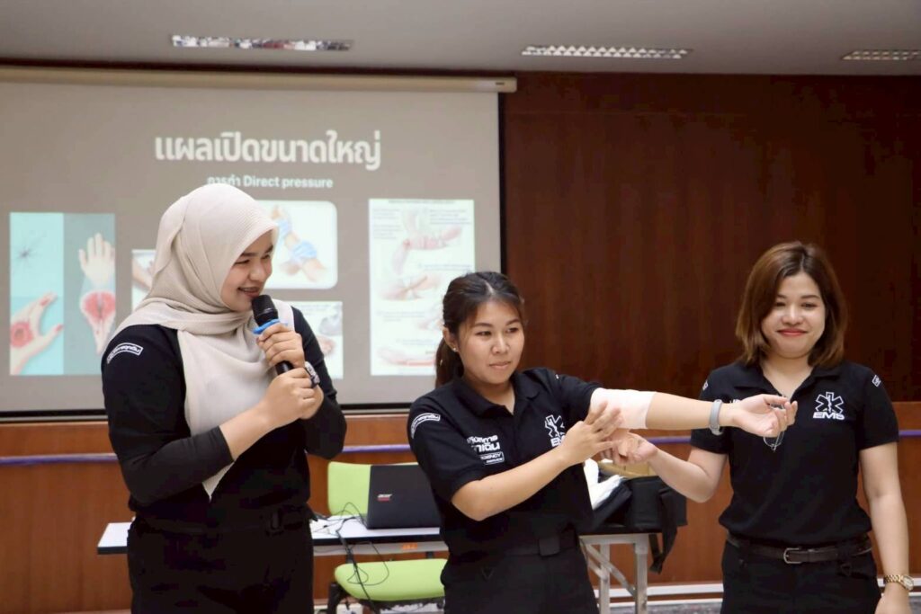 ทั้งนี้ โครงการดังกล่าวมีนักศึกษา มรภ.สงขลา สนใจเข้าร่วมโครงการจำนวน 106 คน และได้รับเกียรติจากวิทยากรจากโรงพยาบาลสงขลา และงานบริการการแพทย์ฉุกเฉิน องค์การบริหารส่วนจังหวัดสงขลา งานสื่อสารองค์กร มรภ.สงขลา ร่วมถ่ายทอดความรู้และประสบการณ์ ในหัวข้อ ต่างๆ ดังนี้ 1. บทบาทหน้าที่ของแกนนำสุขภาพและแนวทางการสร้างมหาวิทยาลัยสร้างเสริมสุขภาพ 2. การคัดกรองสุขภาพ การซักประวัติ และการวัดสัญญาณชีพ 3. พื้นฐานการปฐมพยาบาลและการช่วยชีวิต 4. การปฐมพยาบาลเบื้องต้นเกี่ยวกับการจัดการบาดแผล กระดูกและข้อ และการเคลื่อนย้ายผู้ป่วย 5. การประเมินสถานการณ์ การประเมินผู้ป่วยและการตัดสินใจสำหรับการปฐมพยาบาลในสถานการณ์จริง 6. การส่งเสริม ป้องกันควบคุมโรค และงานคุ้มครองผู้บริโภคในมหาวิทยาลัย 7. แนวทางการเฝ้าระวังสุขภาพนักศึกษาและออกแบบกิจกรรมส่งเสริมสุขภาพที่น่าสนใจสำหรับวัยรุ่น 8. ทักษะการสื่อสารเพื่อสุขภาพและการใช้สื่อโซเชียลมีเดียรณรงค์และประชาสัมพันธ์ด้านสุขภาพ ซึ่งล้วนเป็นหัวข้อที่มีความสำคัญและสอดคล้องกับบริบทแกนนำสุขภาพนักศึกษารุ่นใหม่เป็นอย่างยิ่ง