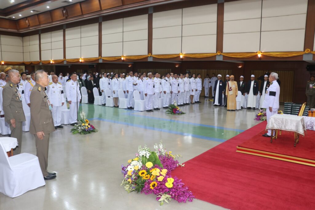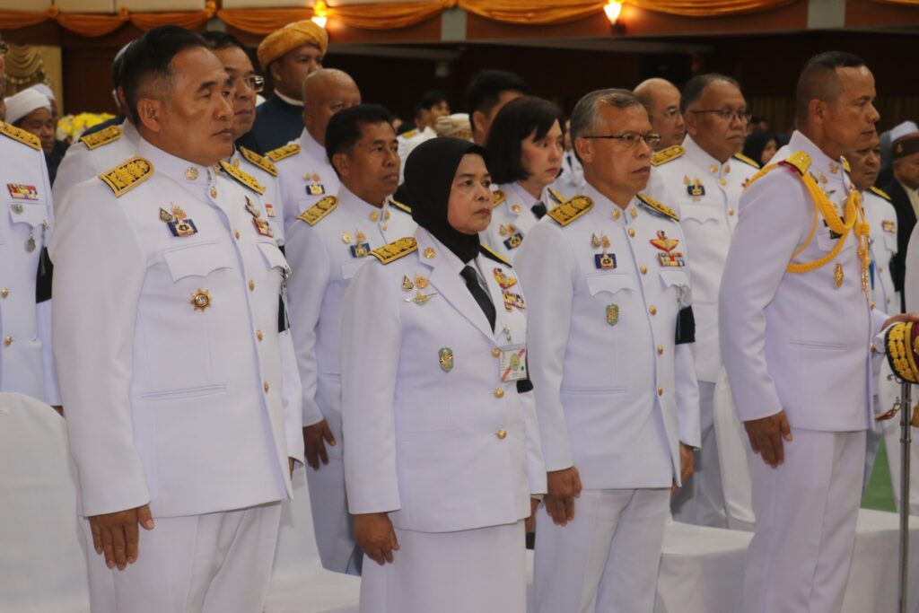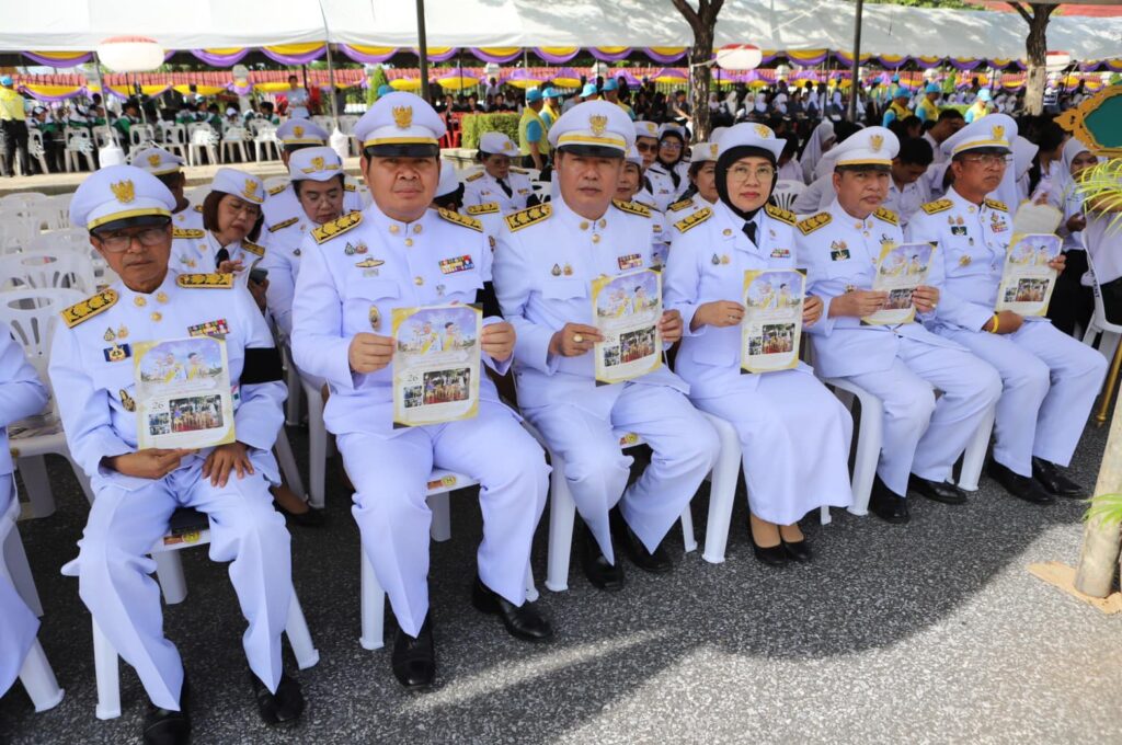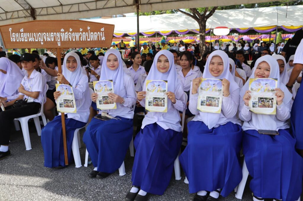 วันนี้ (26 ตุลาคม 2568) เวลา 17.30 น. พระบาทสมเด็จพระเจ้าอยู่หัว ทรงพระกรุณาโปรดเกล้าฯ ให้ พลเอก สุรยุทธ์ จุลานนท์ ประธานองคมนตรี เป็นผู้แทนพระองค์มอบโล่เกียรติคุณและเงินรางวัลแก่คณะกรรมการอิสลามประจำจังหวัดและอิหม่ามที่มีผลการปฏิบัติงานดีเด่น ประจำปี 2567 พระราชทานรางวัลแก่ผู้แทนโรงเรียน ผู้บริหารโรงเรียน ครูและนักเรียนโรงเรียนเอกชนสอนศาสนาอิสลามภาคใต้ ที่ได้รับการคัดเลือก ประจำปี 2567 ณ ที่ทำการองค์การบริหารส่วนจังหวัดปัตตานี อำเภอเมืองปัตตานี จังหวัดปัตตานี โดยมี พลโท นรธิป โพยนอก แม่ทัพภาคที่ 4 / ผู้อำนวยการรักษาความมั่นคงภายในภาค 4 , นายนันทพงศ์ สุวรรณรัตน์ รองเลขาธิการศูนย์อำนวยการบริหารจังหวัดชายแดนภาคใต้ , นางพาตีเมาะ สะดียามู ผู้ว่าราชการจังหวัดปัตตานี , ผู้แทนจุฬาราชมนตรี พร้อมด้วยหัวหน้าส่วนราชการ ข้าราชการ และประชาชน ร่วมต้อนรับ