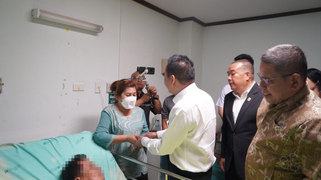 เย็นวันนี้ 17 ก.ค. 68 ที่ โรงพยาบาลระโนด อ.ระโนด จ.สงขลา นายเดชอิศม์ ขาวทอง รัฐมนตรีช่วยว่าการกระทรวงมหาดไทย พร้อมนายสังคม เกิดก่อ รองผู้ว่าราชการจังหวัดสงขลา, และนายกฤชณัทท พลรัตน์ นายอำเภอระโนด นำกระเช้าเยี่ยมและเงินปลอบขวัญมอบให้กำลังใจแก่ นายเจริญ ทองรัตน์ อายุ 65 ปี ผู้ได้บาดเจ็บจากเหตุคนร้าย เป็นกลุ่มชายฉกรรจ์ 5 คน อุ้มขึ้นรถตู้ไปรุมทำร้ายร่างกาย เหตุเกิดเมื่อวันที่ 11 กรกฎาคม 2568 ในพื้นที่หมู่ที่ 4 ตำบลระวะ อำเภอระโนด จังหวัดสงขลา อาการขณะนี้เเพทย์ผู้ให้การรักษาให้ข้อมูลว่า ผู้ได้รับบาดเจ็บกระดูกซี่โครงหัก 2 ซี่ จากการได้รับความกระทบกระเทือน มีเเผลที่นิ้วกลาง และศีรษะ ตอนนี้อาการดีขึ้น ลุกเดินได้มากขึ้น เเต่ยังต้องพักฟื้นต่อไป สภาพจิตใจดีขึ้น แต่ทางครอบครัวยังคงหวาดกลัวเนื่องด้วยผู้ก่อเหตุเป็นกลุ่มผู้มีอิทธิพลในพื้นที่ โดย นายเดชอิศม์ ขาวทอง รัฐมนตรีช่วยว่าการกระทรวงมหาดไทย ได้พูดคุยสอบถามอาการ ให้กำลังใจครอบครัวผู้ได้รับบาดเจ็บ และให้คำมั่นว่าตนจะไม่ปล่อยให้ผู้กระทำผิดลอยนวล จะเร่งติดตามตัวคนร้ายมาดำเนินคดีให้ถึงที่สุดพร้อมสั่งกำชับให้ตำรวจและฝ่ายปกครองเข้าดูแลความปลอดภัยอย่างใกล้ชิด อย่าให้เกิดเหตุการณ์ซ้ำรอย ก่อนจะลงมาให้สัมภาษณ์ต่อสื่อมวลชน