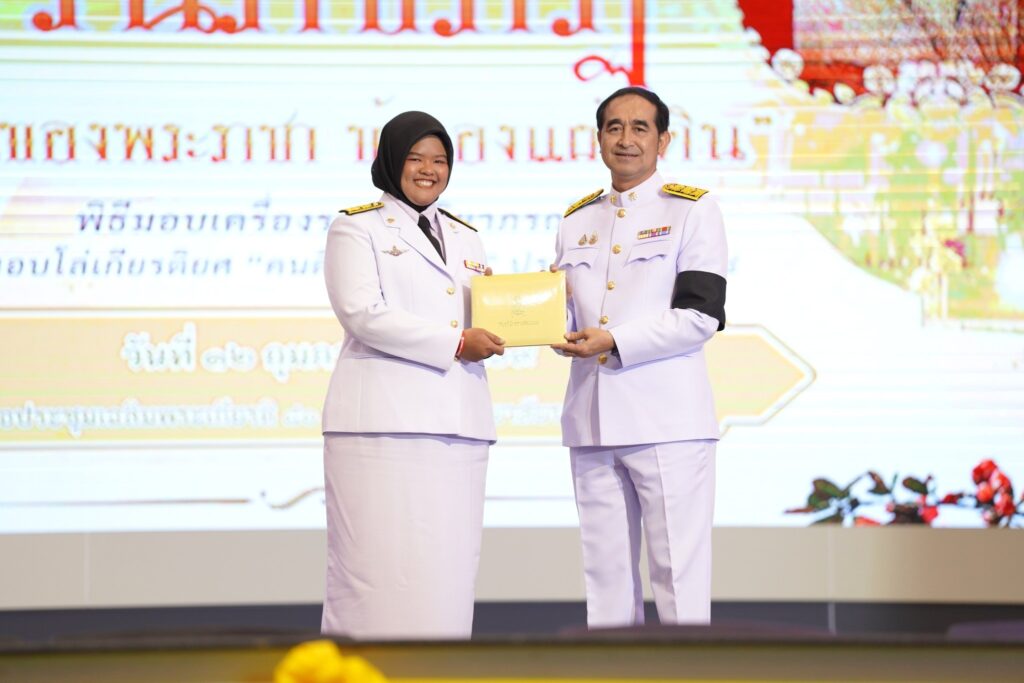 โอกาสเดียวกันนี้ มรภ.สงขลา ได้จัดพิธีมอบเกียรติบัตรแก่ผู้ที่ได้รับรางวัลนักศึกษารางวัลพระราชทาน ระดับอุดมศึกษา ประจำปีการศึกษา 2567 ประเภทชมเชย นางสาวซัลมา หมัดหลำ