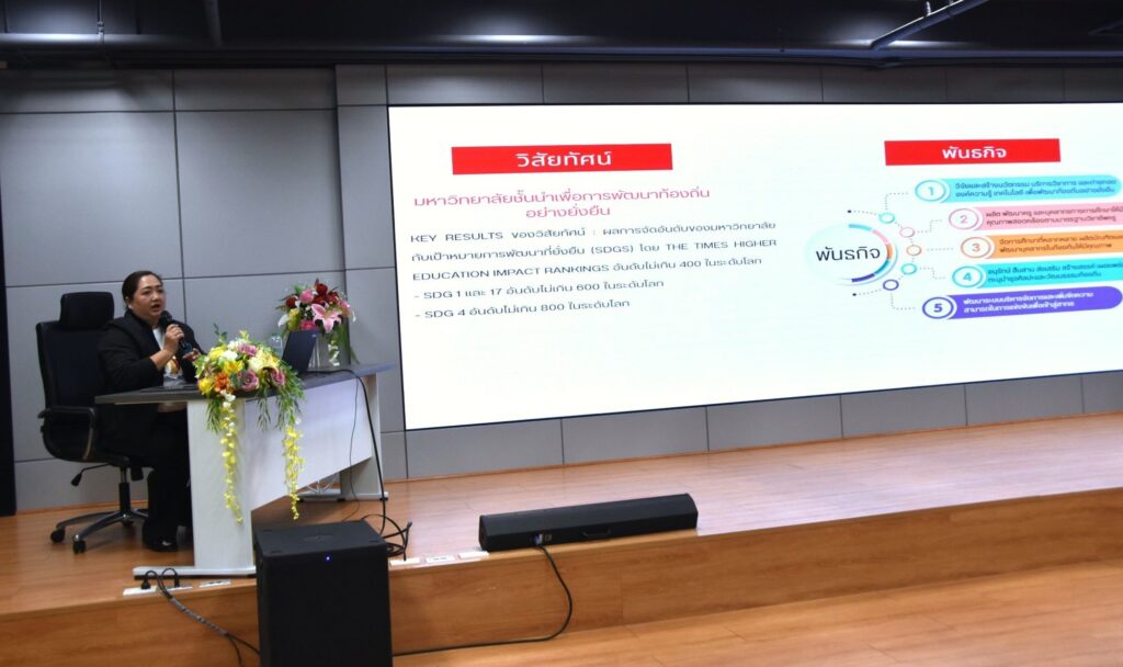 เมื่อวันที่ 19 กุมภาพันธ์ 2569 กองนโยบายและแผน สำนักงานอธิการบดี มหาวิทยาลัยราชภัฏสงขลา (มรภ.สงขลา) จัดโครงการประชุมเชิงปฏิบัติการ “การวิเคราะห์สภาพแวดล้อมของมหาวิทยาลัยราชภัฏสงขลา (SWOT Analysis)” ณ ห้องประชุมวิชัย รัตนากีรณวร ชั้น 2 คณะวิทยาศาสตร์และเทคโนโลยี มรภ.สงขลา วิทยากรโดย อาจารย์วันฉัตร จารุวรรณโน รองอธิการบดีฝ่ายวางแผนและงบประมาณ มรภ.สงขลา ถ่ายทอดความรู้ให้แก่กลุ่มเป้าหมาย