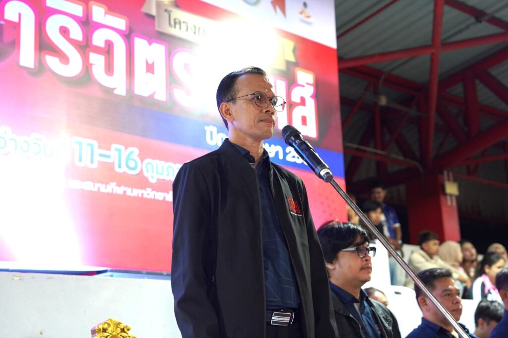 เมื่อวันที่ 14 กุมภาพันธ์ 2569 ผศ.พิเชษฐ์ จันทวี อธิการบดีมหาวิทยาลัยราชภัฏสงขลา (มรภ.สงขลา) มอบหมายให้ ผศ.ดร.กันตภณ มะหาหมัด รองอธิการบดีรักษาราชการแทนอธิการบดี มรภ.สงขลา เป็นประธานในพิธีเปิดการแข่งขันกีฬาปาริฉัตรเกมส์ ปีการศึกษา 2568 ณ สนามกีฬา มรภ.สงขลา จัดโดยองค์การนักศึกษา ภาคปกติ ร่วมกับกองพัฒนานักศึกษา สำนักงานอธิการบดี มรภ.สงขลา โดยมีคณะผู้บริหารของมหาวิทยาลัยร่วมเป็นเกียรติในพิธี ถือเป็นกิจกรรมสำคัญที่จะช่วยส่งเสริม สนับสนุน การทำงานร่วมกันเป็นหมู่คณะ รู้จักเสียสละทั้งแรงกายแรงใจ และส่งเสริมสุขภาพพลานามัยให้สมบูรณ์ แข็งแรง ได้ชื่นชมในสุนทรียภาพของการกีฬา อีกทั้งยังเป็นการพัฒนานักศึกษาของ มรภ.สงขลา ให้เป็นบัณฑิตที่มีคุณภาพต่อไปในอนาคต