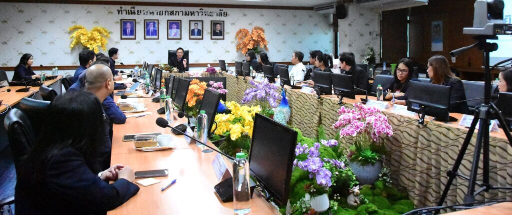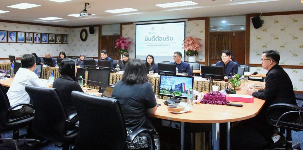 เมื่อวันที่ 3 พฤศจิกายน 2568 ผศ.พิเชษฐ์ จันทวี อธิการบดีมหาวิทยาลัยราชภัฏสงขลา (มรภ.สงขลา) มอบหมายให้ ผศ.ธนัย ตันวานิช รองอธิการบดีฝ่ายพัฒนานักศึกษา อาจารย์เอมอร อ่าวสกุล ผู้อำนวยการสำนักส่งเสริมวิชาการและงานทะเบียน พร้อมด้วยทีมผู้บริหาร หัวหน้าสำนักงาน หัวหน้างาน และเจ้าหน้าที่สำนักส่งเสริมวิชาการและงานทะเบียน ให้การต้อนรับคณะศึกษาดูงานจากศูนย์สหกิจศึกษาและพัฒนาอาชีพ มหาวิทยาลัยวลัยลักษณ์ (ม.วลัยลักษณ์) นำโดย อาจารย์ ดร.อัตนันท์ เตโชพิศาลวงศ์ ผู้อำนวยการศูนย์สหกิจศึกษาและพัฒนาอาชีพ ในโอกาสเดินทางมาศึกษาดูงานและแลกเปลี่ยนเรียนรู้ด้านระบบสารสนเทศสหกิจศึกษา ตลอดจนการบริหารจัดการสหกิจศึกษาและการศึกษาเชิงบูรณาการกับการทำงาน (CWIE) ณ ห้องประชุมอรัญ ธรรมโน ชั้น 8 อาคารอำนวยการ มรภ.สงขลา