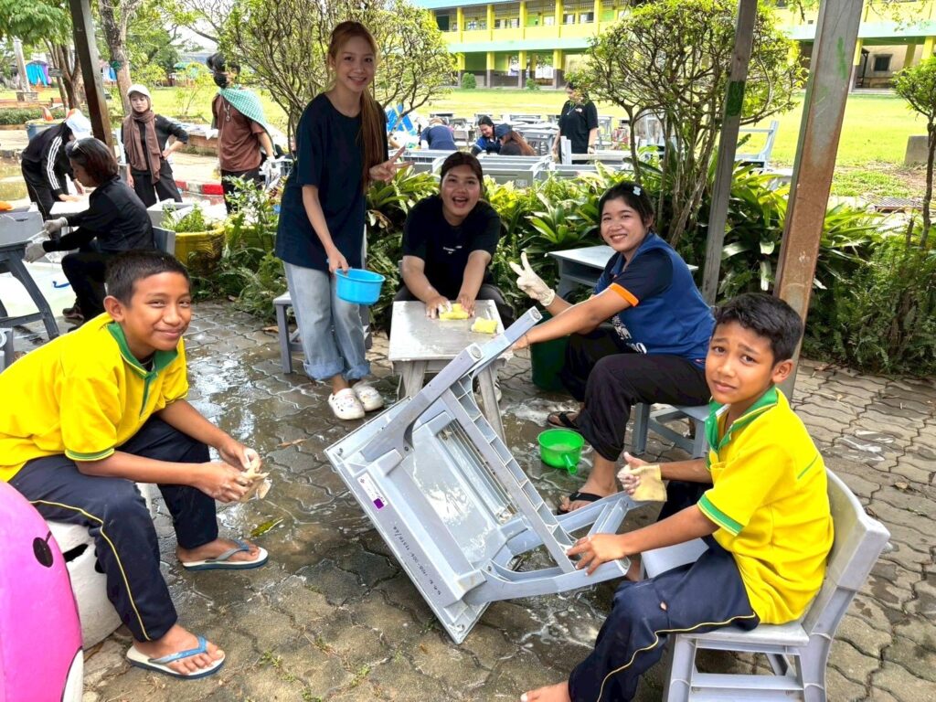 อย่างไรก็ตาม แม้น้ำจะลดลงแล้วแต่ความเสียหายในโรงเรียนบางแห่งยังคงหนักหนา ทั้งอาคารเรียนที่ยังไม่สามารถใช้งานได้ อุปกรณ์การเรียนที่เสียหายจนต้องรื้อใหม่ รวมถึงโรงเรียนขนาดเล็กที่มีครูและนักเรียนไม่มาก ทำให้การฟื้นฟูเป็นไปได้ยาก หลายแห่งจำเป็นต้องเลื่อนเปิดเรียน และต่างรู้สึกดีใจและโล่งใจ เมื่อทราบว่าคณะมนุษยศาสตร์และสังคมศาสตร์ มรภ.สงขลา จะเข้ามาช่วยฟื้นฟูร่วมกับคณะครูและชุมชน ซึ่งทางคณะฯ รู้สึกยินดีเป็นอย่างยิ่งที่ได้เป็นส่วนหนึ่งในการแบ่งเบาภาระของโรงเรียนและชุมชนที่ได้รับผลกระทบ และขอเป็นกำลังใจให้ทุกพื้นที่ก้าวผ่านความยากลำบากครั้งนี้ไปได้โดยเร็ว และขอให้เด็ก ๆ ได้กลับคืนสู่ห้องเรียนที่ปลอดภัยและพร้อมสำหรับการเรียนรู้อีกครั้ง