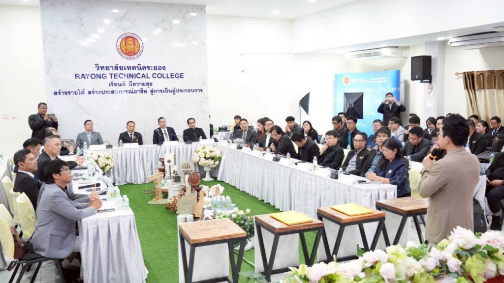 โอกาสเดียวกันนี้ วิทยาลัยเทคนิคระยองได้ลงนามความร่วมมือกับมหาวิทยาลัยราชภัฏนครสวรรค์ เพื่อหารือแนวทางการพัฒนาหลักสูตรร่วมในการผลิตบัณฑิตสมรรถนะสูงสำหรับอุตสาหกรรมเป้าหมายแห่งอนาคต โดยมีมหาวิทยาลัยราชภัฏอื่น ๆ เข้าร่วมด้วย นอกจากนั้น ยังมีกิจกรรมวิพากษ์หลักสูตรในสาขายานยนต์ไฟฟ้า ระบบราง วิศวกรรมคอมพิวเตอร์และปัญญาประดิษฐ์ ตลอดจนการบรรยายพิเศษในหัวข้อ “สถานการณ์ตลาดยานยนต์ไฟฟ้าในประเทศไทย” โดยวิทยากรผู้ทรงคุณวุฒิ