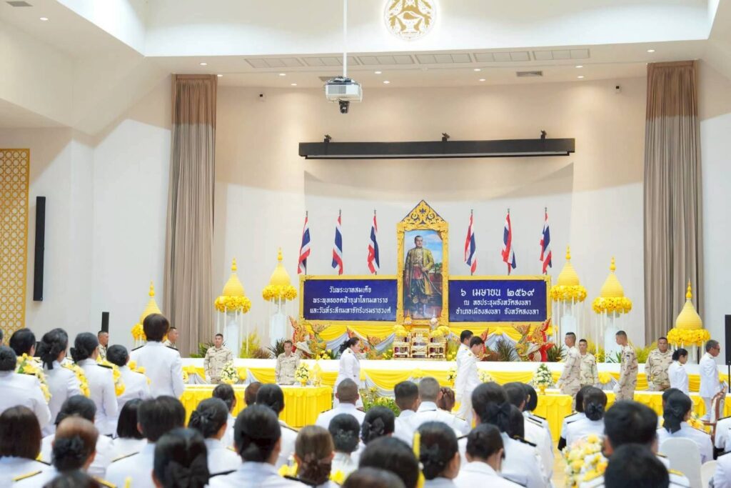 วันที่ 6 เมษายน 2569 นางไปยดา สุตระ ปฏิบัติหน้าที่ในตำแหน่งผู้อำนวยการกองพัฒนานักศึกษา สำนักงานอธิการบดี มหาวิทยาลัยราชภัฏสงขลา (มรภ.สงขลา) พร้อมด้วย นายแวอัชมัน แวมูซอ ปฏิบัติหน้าที่ในตำแหน่งหัวหน้างานบริการและพัฒนานักศึกษา เป็นตัวแทนของมหาวิทยาลัยร่วมพิธีถวายราชสักการะเนื่องในวันพระบาทสมเด็จพระพุทธยอดฟ้าจุฬาโลกมหาราช และวันที่ระลึกมหาจักรีบรมราชวงศ์ ประจำปี พ.ศ. 2569 (วันที่ 6 เมษายน) จัดโดยจังหวัดสงขลา ณ หอประชุมจังหวัดสงขลา ศาลากลางจังหวัดสงขลา