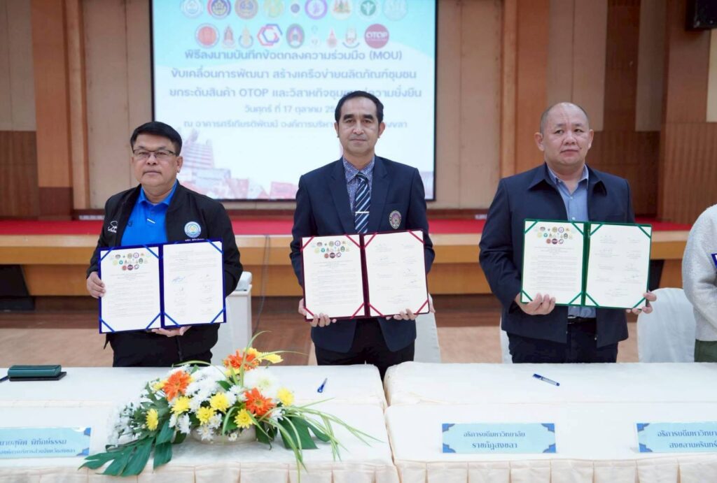 อบจ.สงขลา ผนึกกำลัง มรภ.สงขลา และองค์กรพันธมิตร ลงนามความร่วมมือขับเคลื่อนการพัฒนา สร้างเครือข่ายผลิตภัณฑ์ชุมชน ยกระดับสินค้า OTOP และวิสาหกิจชุมชนสู่ความยั่งยืน สนับสนุนทางวิชาการ การฝึกอบรม ควบคู่ให้ความรู้ในด้านการบริหารจัดการ การตลาด การออกแบบ และการใช้เทคโนโลยี