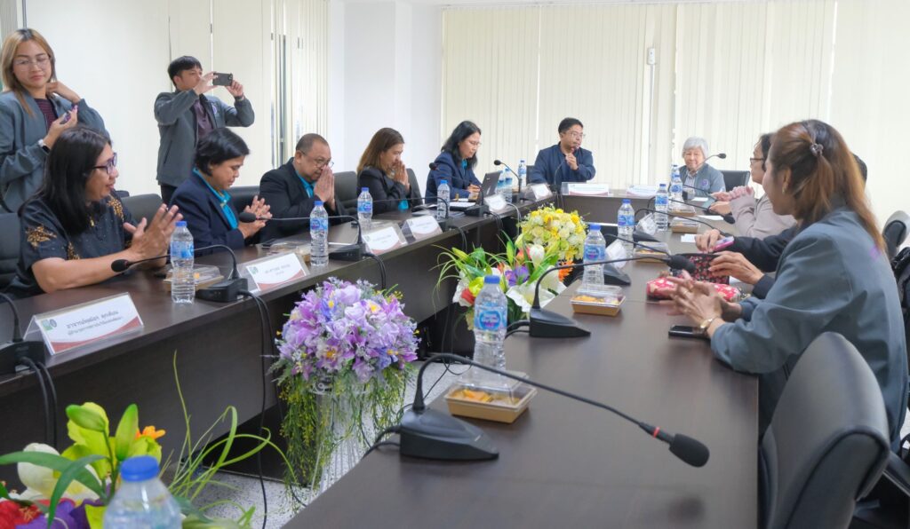 เมื่อวันที่ 14 ตุลาคม 2568 มหาวิทยาลัยราชภัฏสงขลา (มรภ.สงขลา) นำโดย รศ.ดร.วีระชัย แสงฉาย รองอธิการบดีฝ่ายวิชาการและวิจัย พร้อมคณะผู้บริหารสถาบันวิจัยและพัฒนา นักวิจัย และนักศึกษาทีมวิศวกรสังคมของมหาวิทยาลัย ให้การต้อนรับคณะผู้ทรงคุณวุฒิจากสำนักงานการวิจัยแห่งชาติ (วช.) กระทรวงการอุดมศึกษา วิทยาศาสตร์ วิจัยและนวัตกรรม นำโดย ศาสตราจารย์พิเศษ ดร.กาญจนา เงารังษี ในโอกาสเดินทางมาตรวจเยี่ยมและติดตามผลการดำเนินงาน โครงการ “การบ่มเพาะเพื่อเพิ่มศักยภาพการพัฒนาเชิงพื้นที่ด้วยกระบวนการวิศวกรสังคม” ซึ่งได้รับการสนับสนุนทุนวิจัยจาก วช. โดย มรภ.สงขลา ได้รายงานผลการดำเนินงานและนำเสนอผลลัพธ์จากการลงพื้นที่พัฒนาเชิงพื้นที่ด้วยกระบวนการวิศวกรสังคม