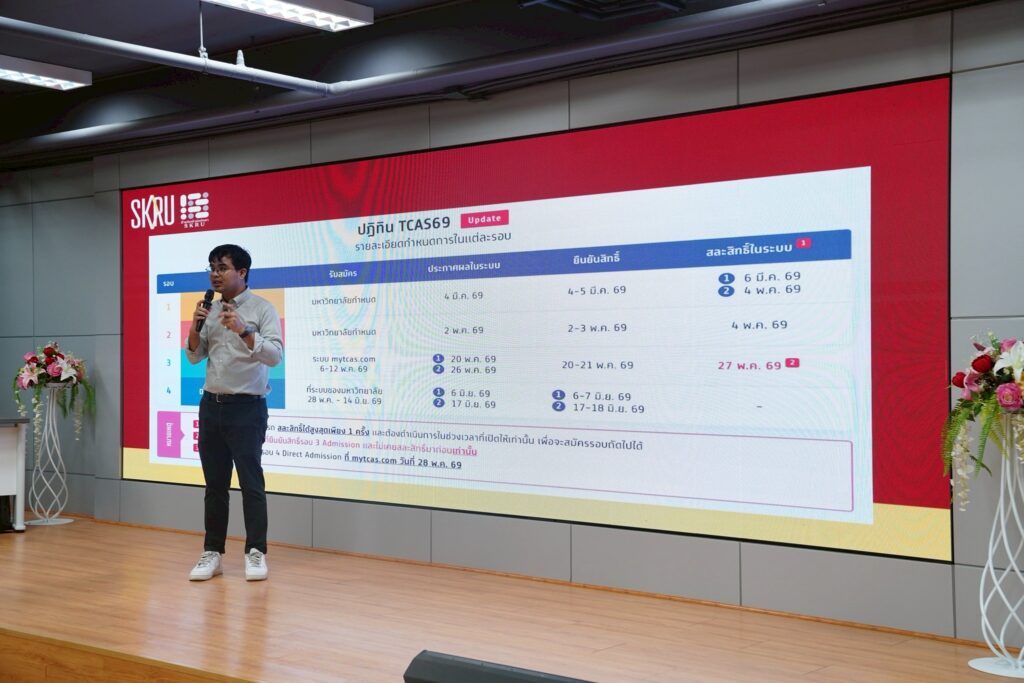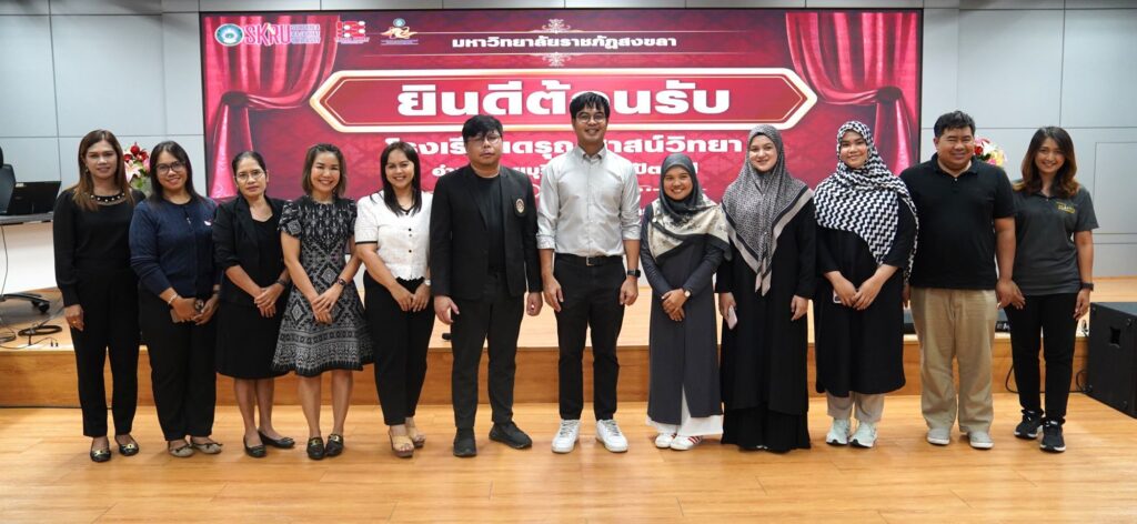 เมื่อวันที่ 12 กุมภาพันธ์ 2569 ผศ.พิเชษฐ์ จันทวี อธิการบดีมหาวิทยาลัยราชภัฏสงขลา (มรภ.สงขลา) มอบหมายให้สำนักส่งเสริมวิชาการและงานทะเบียน มรภ.สงขลา นำโดย อาจารย์ธีรวุฒิ แก้วมาก รองผู้อำนวยการสำนักส่งเสริมวิชาการและงานทะเบียน พร้อมด้วยเจ้าหน้าที่สำนักส่งเสริมวิชาการและงานทะเบียน ให้การต้อนรับคณะครูและนักเรียนจากโรงเรียนดรุณศาสน์วิทยา อ.สายบุรี จ.ปัตตานี ณ ห้องประชุมวิชัย รัตนากีรณวร ชั้น 2 คณะวิทยาศาสตร์และเทคโนโลยี มรภ.สงขลา