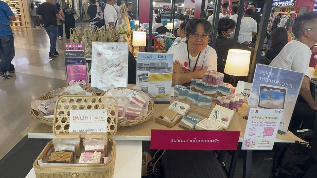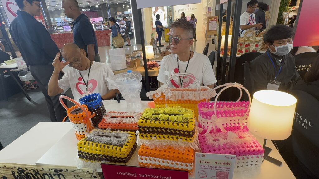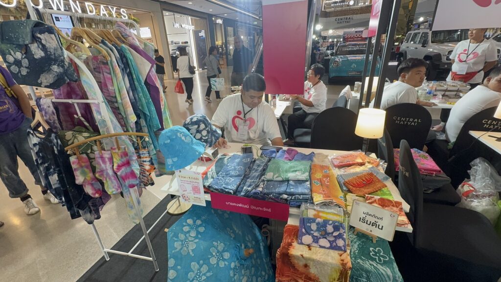 ภายในงานยังมีบูธจำหน่ายและจัดแสดงผลิตภัณฑ์จากผู้พิการในพื้นที่ภาคใต้