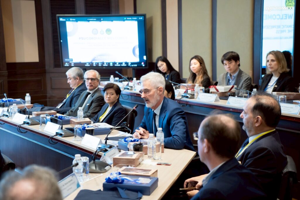ผู้ช่วยศาสตราจารย์ ดร.นิวัติ แก้วประดับ อธิการบดี กล่าวว่า มหาวิทยาลัยสงขลานครินทร์ ก่อตั้งขึ้นเมื่อปี 2510 ประกอบด้วย 5 วิทยาเขต ได้แก่ หาดใหญ่ ปัตตานี ภูเก็ต สุราษฎร์ธานี และตรัง เป็นศูนย์กลางแห่งความเป็นเลิศทางวิชาการและนวัตกรรมในภูมิภาคภาคใต้ และได้รับการจัดอันดับให้เป็น 1 ใน 10 มหาวิทยาลัยชั้นนำของประเทศไทย โดย QS นอกจากนี้มหาวิทยาลัยยังมีความร่วมมือกับสถาบันการศึกษาทั่วโลกมากกว่า 600 แห่ง มีนักศึกษานานาชาติจาก 37 ประเทศ เข้ามาศึกษาทั้งในระดับบัณฑิตศึกษาและระดับปริญญาตรี ซึ่งมหาวิทยาลัยให้ความสำคัญสูงสุดต่อความปลอดภัยและความมั่นคงของนักศึกษาและบุคลากร สอดคล้องกับนโยบายของมหาวิทยาลัยในฐานะสถาบันแห่งความเป็นเลิศทางวิชาการอย่างมั่นคงและยั่งยืน
