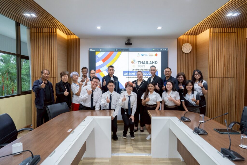 มหาวิทยาลัยสงขลานครินทร์ นำโดย รองศาสตราจารย์ ดร.วศิน สุวรรณรัตน์ รองอธิการบดีวิทยาเขตหาดใหญ่ พร้อมด้วย นางสาวดารณี ทองประชุม ผู้อำนวยการศูนย์ประชุมนานาชาติฉลองสิริราชสมบัติครบ ๖๐ ปี นางอุไรวรรณ จันลาภ ผู้อำนวยการสำนักงานการกีฬาแห่งประเทศไทยจังหวัดสงขลา นางสาวศิรินภา ห่อชื่อ ผู้ช่วยเลขาธิการสมาคมกีฬาวูซูแห่งประเทศไทย และตัวแทนจากชมรมกีฬาวูซูจังหวัดสงขลา ร่วมแถลงเตรียมความพร้อมจัดการแข่งขันกีฬาซีเกมส์ ครั้งที่ 33 ประเภทกีฬาวูซู ในระหว่างวันที่ 13-15 ธันวาคม 2568 ณ สนามการแข่งขันศูนย์ประชุมนานาชาติฉลองสิริราชสมบัติครบ ๖๐ ปี ม.อ. หาดใหญ่ โดยมีบุคลากร ตัวแทนนักศึกษา ม.อ. เข้าร่วม ณ ห้องประชุม 215 สำนักงานอธิการบดี มหาวิทยาลัยสงขลานครินทร์ วิทยาเขตหาดใหญ่ เมื่อวันที่ 21 พฤศจิกายน 2568
