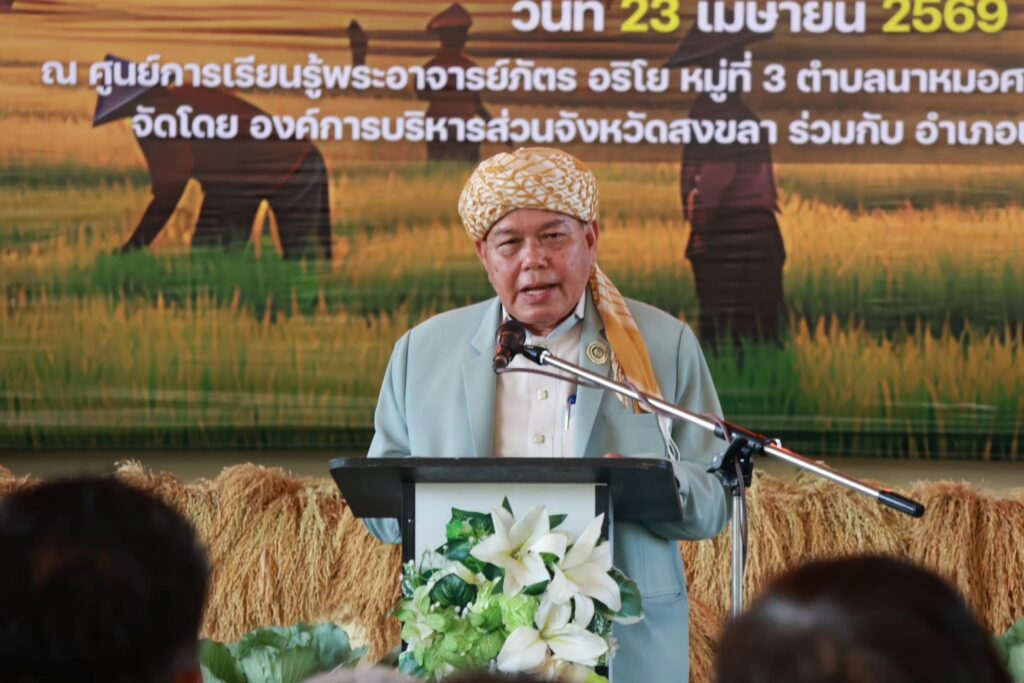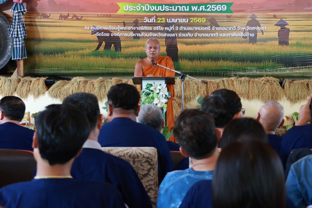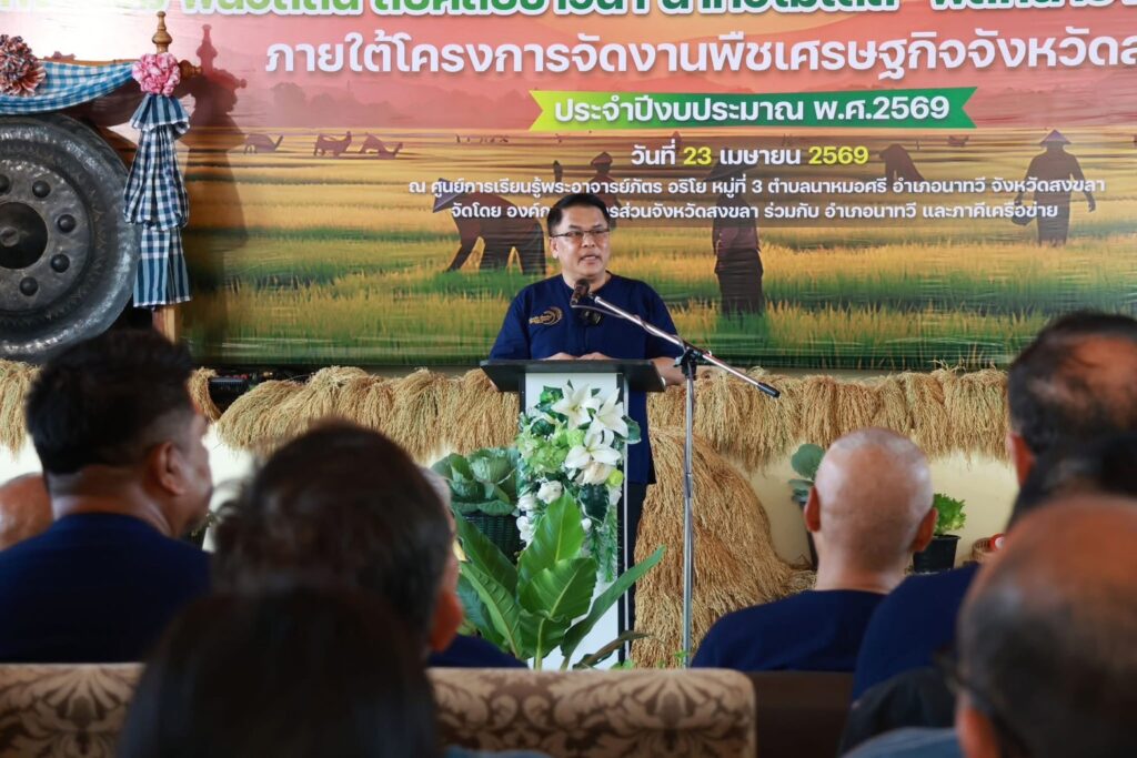 (วันที่ 23 เมษายน 2569) ณ ศูนย์เรียน“พลิกนาร้าง เป็นนารักษ์ ปีที่ 9” รองแม่ทัพภาคที่ 4 นำพี่น้องไทยพุทธ–ไทยมุสลิม ฟื้นวิถีถิ่น สืบสานศิลป์ชาวนา “นาทวีโมเดล” เพื่อสร้างความมั่นคงทางอาหารและความมั่นคงทางสังคมรู้พระอาจารย์ภัตร อริโย หมู่ที่ 3 ตำบลนาหมอศรี อำเภอนาทวี จังหวัดสงขลา พลตรี กรกฎ ภู่โชติ รองแม่ทัพภาคที่ 4 รองผู้อำนวยการรักษาความมั่นคงภายในภาค 4 ส่วนหน้า เป็นประธานในพิธีเปิดกิจกรรม “ฟื้นวิถีถิ่น สืบสานศิลป์ชาวนา นาทวีโมเดล” ภายใต้กิจกรรม “พลิกนาร้าง เป็นนารักษ์ ปีที่ 9” ซึ่งดำเนินการภายใต้โครงการส่งเสริมพืชเศรษฐกิจจังหวัดสงขลา ประจำปีงบประมาณ 2569