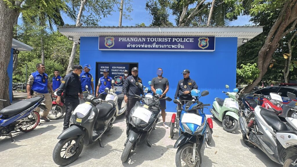 วันนี้ (13 ต.ค. 2568) เวลาประมาณ 09.00 น. ภายใต้การอำนวยการของ พล.ต.ท.ศักย์ศิรา เผือกอ่ำ ผบช.ทท. ตามนโยบายปราบปรามกลุ่มชาวต่างชาติที่กระทำความผิดในพื้นที่ท่องเที่ยว พ.ต.ท.วินิจ บุญชิต สว.ส.ทท.5 กก.2 บก.ทท.3 ได้สั่งการให้เจ้าหน้าที่ตำรวจชุดสืบส่วนตำรวจท่องเที่ยวเกาะพะงัน เข้าจับกุมบูรณาการกำลังร่วมกับตำรวจตรวจคนเข้าเมืองเกาะพะงัน , ฝ่ายปกครอง เข้าตรวจสอบ หลังได้รับร้องเรียนจากพลเมืองดีว่ามีชายชาวต่างชาติลักลอบประกอบอาชีพรถเช่าอย่างผิดกฎหมายที่บริเวณหน้าร้าน “Key King” หมู่ 1 ต.เกาะพะงัน อ.เกาะพะงัน จ.สุราษฎร์ธานี
