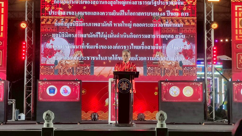 โดยได้รับเกียรติจาก นายจิรวัตร์ มณีโชติ รองผู้ว่าราชการจังหวัดสงขลา เป็นประธานกล่าวเปิดงาน พร้อมด้วย นายอรุณชัย ศิริมหาชัย ประธานมูลนิธิมิตรภาพสามัคคี (ท่งเซียเซี่ยงตึ๊ง) หาดใหญ่ กล่าวต้อนรับและแถลงผลการดำเนินงานของมูลนิธิในรอบปีที่ผ่านมา