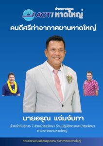 มอบรางวัลคนดีศรีท่าอากาศยานหาดใหญ่ ให้แก่ นายอรุณ แจ่มจันทา เจ้าหน้าที่บริหาร 7 ส่วนบำรุงรักษา ท่าอากาศยานหาดใหญ่