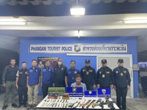 ตำรวจท่องเทียวเกาะพะงัน จับคดีชาวฝรั่งเศสเมาชอบโชร์ปืนโชร์มีด