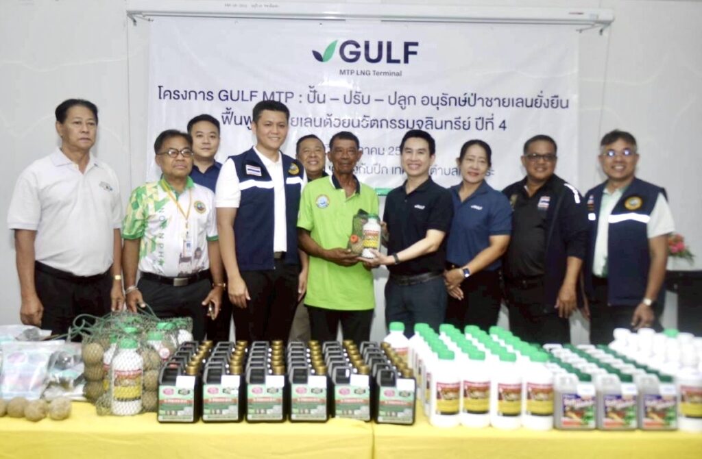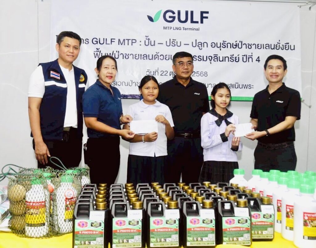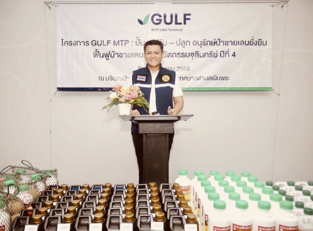 วันที่ 22 ตุลาคม 2568 ณ เทศบาลเมืองเนินพระ จ.ระยอง มีการเปิดโครงการ : ฟื้นฟูป่าชายเลนด้วยจุลินทรีย์ ปีที่ 4 โดย บริษัท กัลฟ์ เอ็มทีพี แอลเอ็นจี เทอร์มินอล จำกัด (GULF MTP) โครงการท่าเทียบเรือขนถ่ายก๊าซธรรมชาติ โครงการสถานีเก็บรักษาและแปรสภาพก๊าซธรรมชาติ ในพื้นที่พัฒนาท่าเรืออุตสาหกรรมมาบตาพุด ระยะที่ 3 พร้อมด้วย บริษัท พอสโก อีโค แอนด์ แชลเลนจ์ คอมปานี ลิมิเต็ด จำกัด และ บริษัท ซีเอแซด ประเทศไทย และ สำนักงานท่าเรืออุตสาหกรรมมาบตาพุด (สทร) เดินหน้าจัดกิจกรรมต่อเนื่องในโครงการ “ฟื้นฟูป่าชายเลนด้วยนวัตกรรม ปี 4 ” ร่วมกับ วิสาหกิจชุมชนกลุ่มประมงเรือเล็กหาดสุชาดา และ เทศบาลเมืองเนินพระ จ.ระยอง โครงการนี้ นำโดย ดร.กฤษณ์ พงษ์เทพิน ผช.ผอ.ฝ่ายชุมชนสัมพันธ์ กลุ่มบริษัท GULF ( วิทยากรส่งเสริมฯ) และ นายศุภฤกษ์ โสภณราพงษ์ ผช.ผู้จัดการฝ่ายชุมชนสัมพันธ์ GMTP ผู้รับผิดชอบโครงการฯ ร่วมกับ นายลำเพย แว่วเสียง ประธานวิสาหกิจชุมชนกลุ่มประมงเรือเล็กหาดสุชาดา เทศบาลเมืองเนินพระ จ.ระยอง โดยได้รับเกียรติจาก นายศุภชัย จิตรดล นายกเทศบาลเมืองเนินพระ อ.เมืองระยอง จ.ระยอง เป็นประธานในกิจกรรมครั้งนี้ ซึ่งมีผู้เข้าร่วมกิจกรรมจากชุมชน หน่วยงานหลายภาคส่วน และ สื่อมวลชน จ.ระยอง กว่า 100 คน