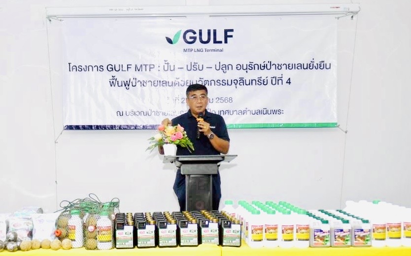 นายศุภฤกษณ์ โสภณราพงษ์ ผช.ผจก. GULF MTP กล่าวว่า บริษัท GULF MTP มีนโยบายชัดเจนและได้ริเริ่มโครงการฟื้นฟูป่าชายเลนด้วยจุลินทรีย์ ร่วมกับ วิสาหกิจชุมชนกลุ่มประมงเรือเล็กหาดสุชาดาฯ มาตั้งแต่ปี 2565 แม้ว่าจะประสบผลสำเร็จเป็นรูปธรรมในระดับหนึ่งอย่างชัดเจนก็ตาม บริษัทฯ จะส่งเสริมสนับสนุนชุมชนและร่วมมือกับเทศบาลเมืองเนินพระฯ ในการสานต่อให้สารถฟื้นฟื้นฟูระบบนิเวศน์ในพื้นที่นี้มากยิ่งขึ้นและเป็นที่มาในการจัดงานในวันนี้ เป็นการคลิกออฟ เริ่มต้นขับเคลื่อนโครงการฯฟื้นฟูป่าชายเลนด้วยจุลินทรีย์ ปีที่ 4 ร่วมกันต่อไปในปี 2569 ต่อเนื่อง ตลอดทั้งปี ครับ